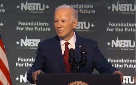 Here is Biden reading “four more years, pause” showing that the entire event is a production built around a corrupt, senile, unattractive, dumb, lying, sniffing, old man.