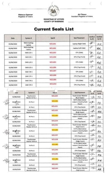 Riverside County citizens received the following set of logs after New California State members, Shelby Bunch and Cathy Cammarato met with the Interim Registrar Art Tinaco and his assistant, Matt Cabellos. Bunch stated that the PRA request was for the original seal log documents, not recreated versions. But these records were recreated because the original records were kept in such a poor manner.