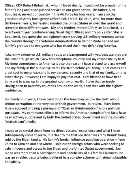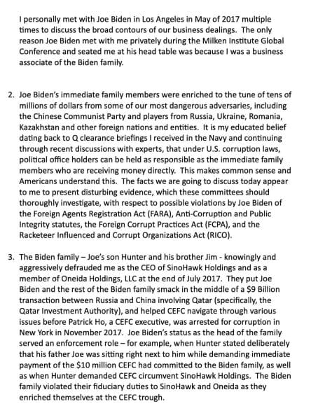 Bobulinski gave opening remarks in front of the US House investigating the Biden crime family.