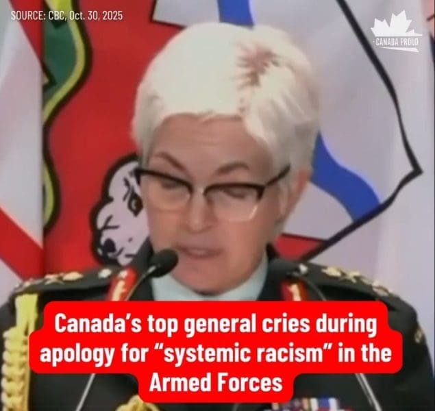NO JOKE – The head of Canada’s military cried while apologizing for Canada’s “systemic racism in its military”.