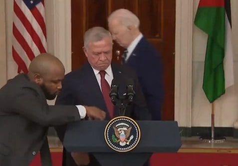 Biden shuffles away after giving very brief remarks alongside the King of Jordan.