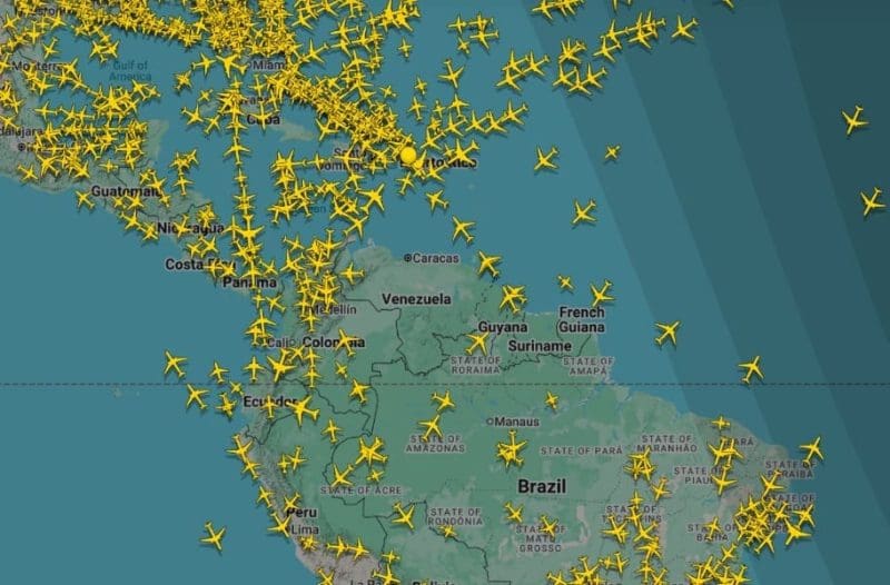 (Above flight tracker shows no flights over Venezuela on Sunday evening.)