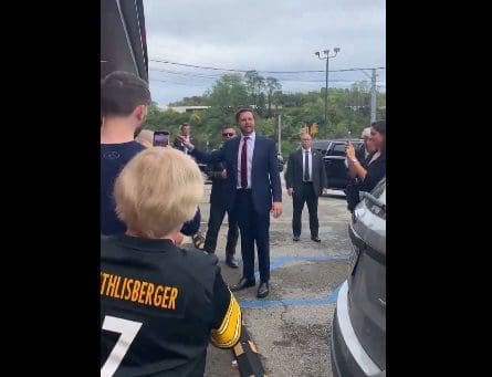 Happening now: Primanti brothers in North Versailles PA just threatened to call the police on JD Vance if he got out of the car to spend time with about 50 people who came out to see him. The video is from a friend of mine who was there.
