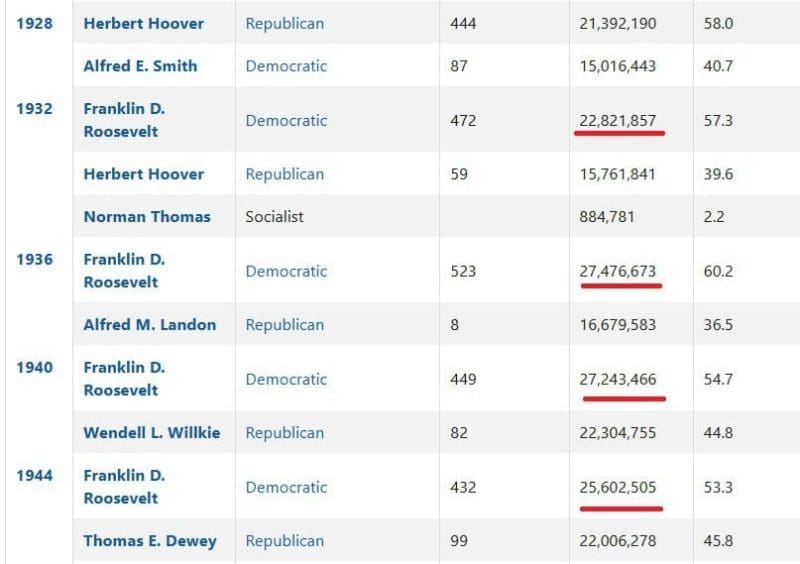 The only person that might be close to President Trump in total votes and wins is FDR who won four elections beginning in 1932. But in total, FDR garnered a little over 100 million votes in his elections.