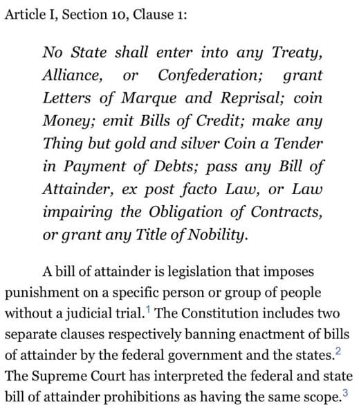 The Constitution in New York states that a person cannot be singled out and prosecuted for a crime without due process. This is exactly what happened to President Trump in corrupt New York.