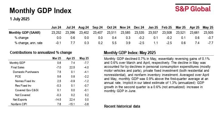 S&P’s Monthly GDP report told subscribers that the economy went nowhere in April and May: