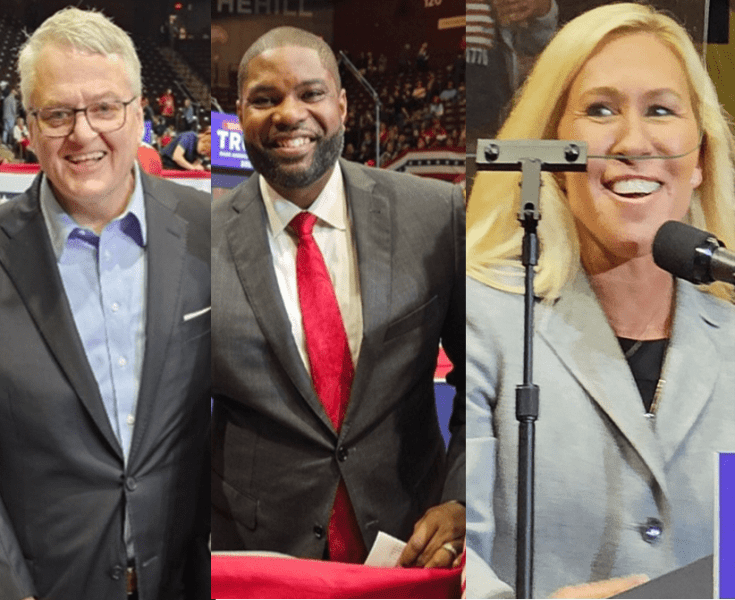There were number of dignitaries I was very happy to meet including the very personable Treasurer of the State of South Carolina, Curtis Loftis (far left); Florida Congressman Byron Donald (Left Center); and the famous Congresswoman, Marjorie Taylor Greene (I even took a selfie with her). I would have loved to have met Senator Tim Scott (On the short list to be Mr. Trump’s VP), but he was too busy. Tim is the first African American Senator to be elected from the Southern United States since Reconstruction.