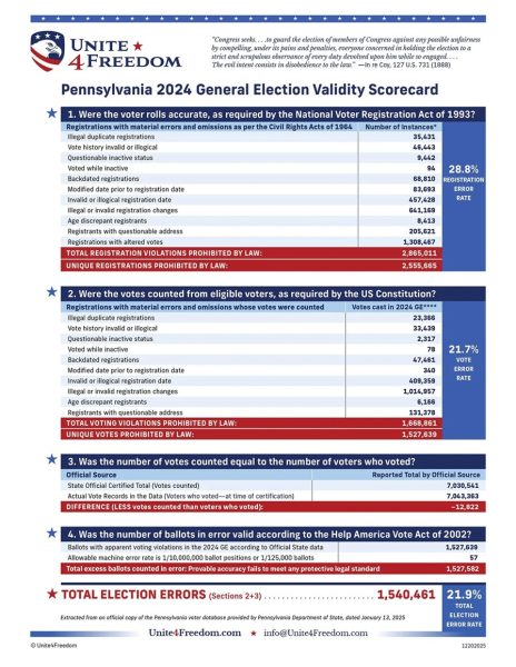 Grounded in Unite4Freedom’s expert data analysis of Pennsylvania’s own official records, NOT speculation or external assumptions, the complaint seeks to evaluate whether federal statutory requirements have been met.